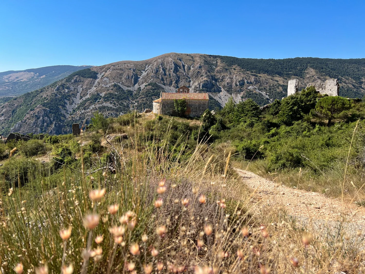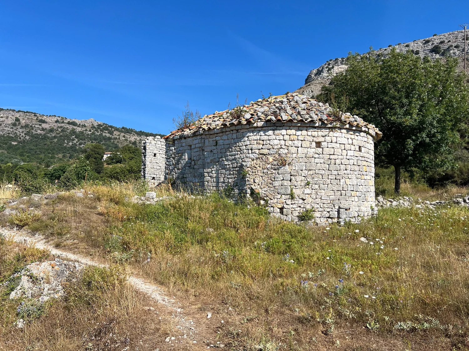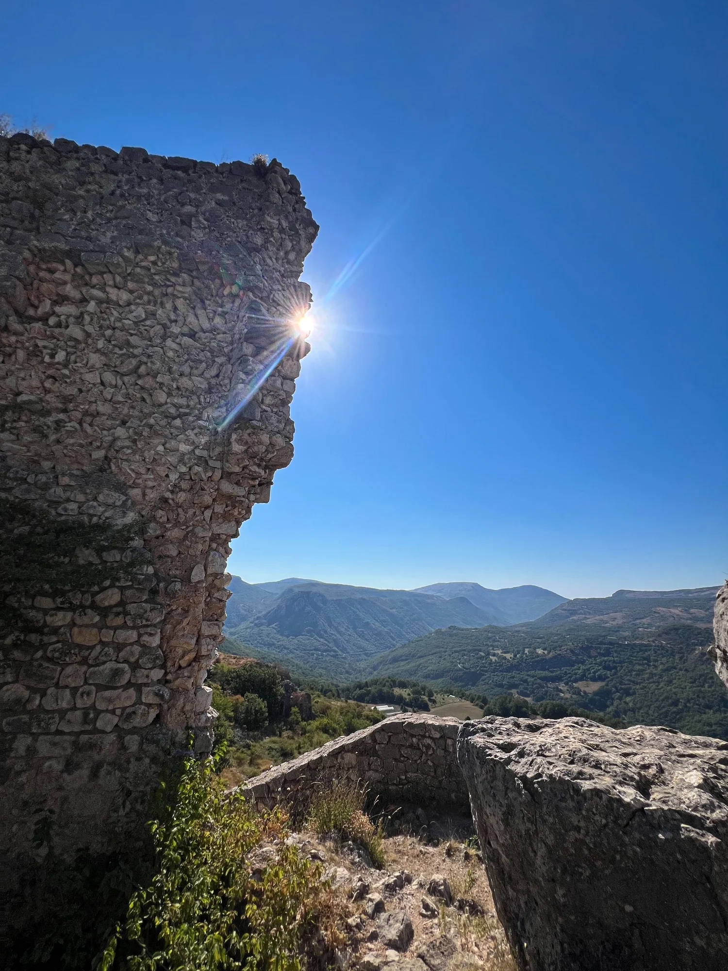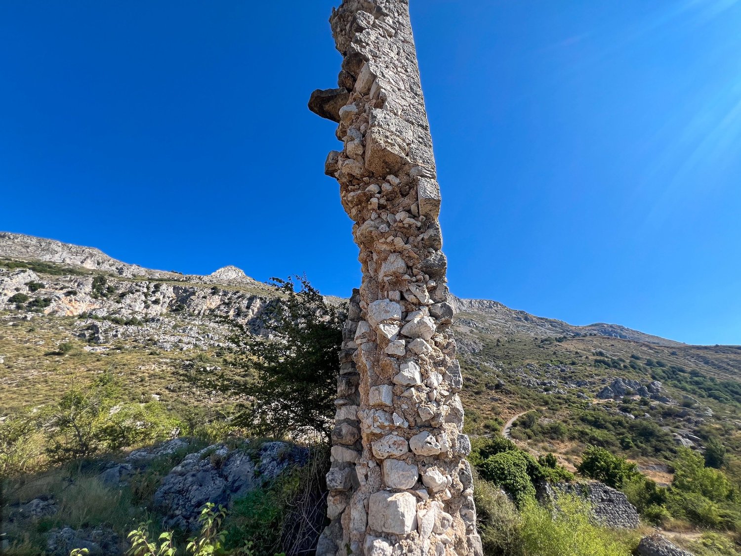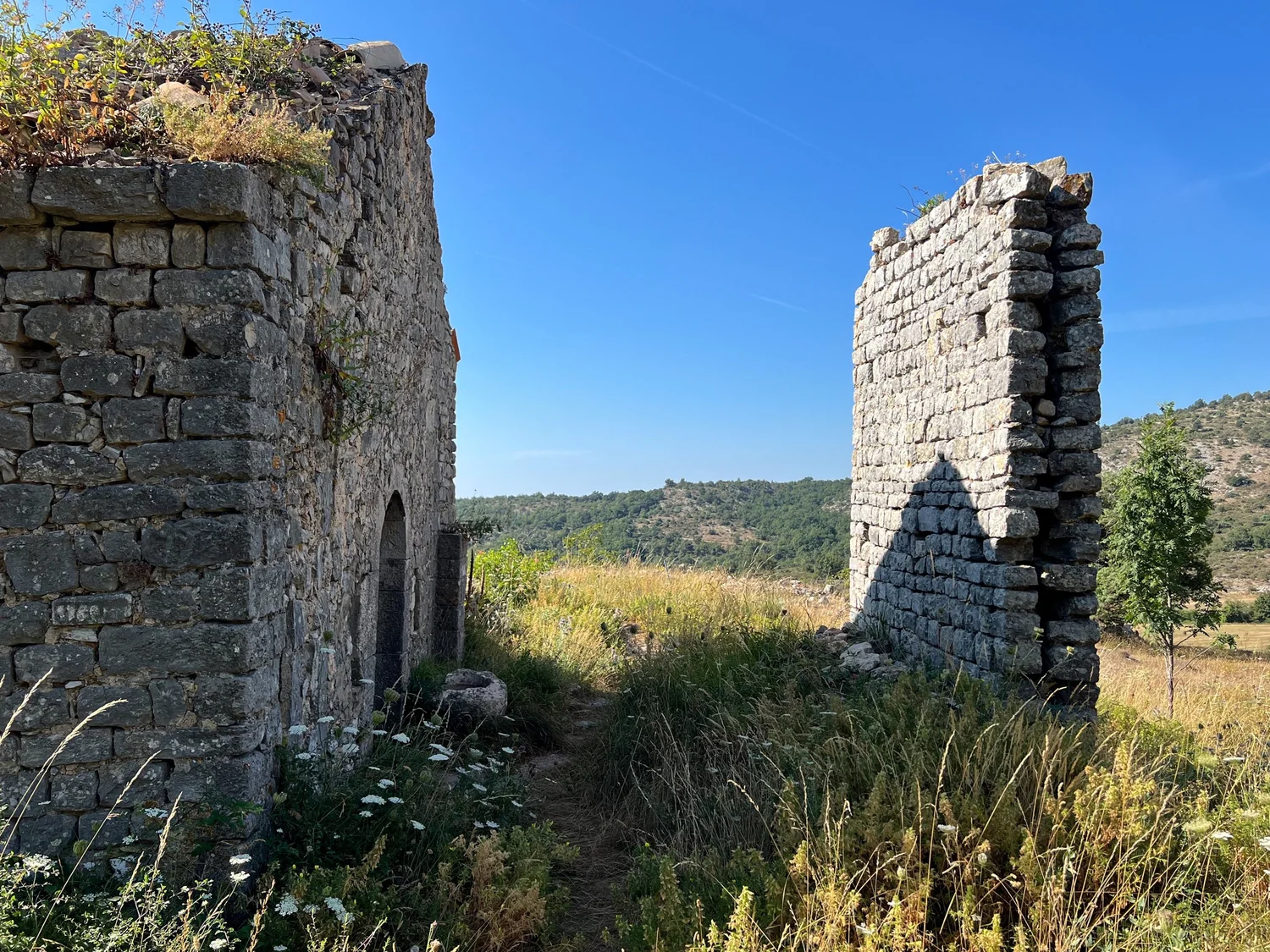 One of the remaining walls of the 13th century castle of Gréolières Haut. The ruins sit a few hundred meters above the medieval village of Greolières, which is still inhabited and contains the ruins of an 11th century castle, apparently destroyed by